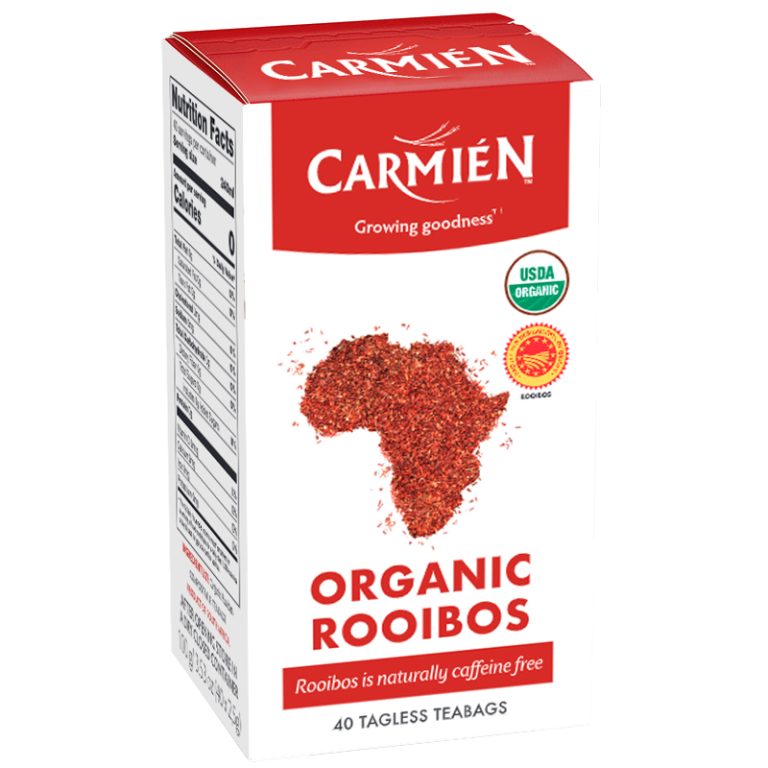 Carmién Organic Pure Rooibos is a superior, well-balanced tea with a natural full aroma and soft sweet taste. This tea is organically grown and free of pesticides. It’s excellent when on a low kilojoule diet and a must for the health and fitness conscious. Rooibos is high in antioxidants, minerals and has multiple health benefits ranging from cancer prevention, improved heart health, digestive health, aiding mineral absorption, improving skin conditions, anxiety, nervousness and sleep.